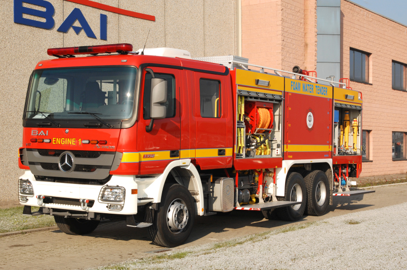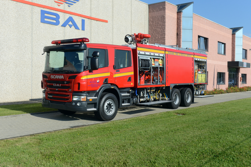 BAI研发的机场消防车包括几种车型:机场快调消防车,大吨位主力消防车和机场救援消防车。如在机场突发事故,这些车型满足机场在紧急情况下快速调拨,实施灭火与救援行动。