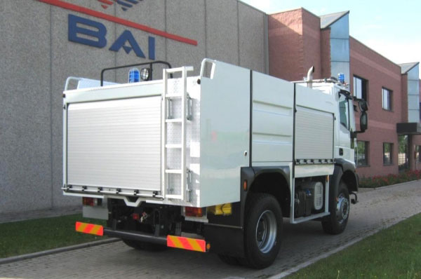 BAI设计的消防车上装可分为两种,灭火型车厢和救援型车厢。灭火型车厢主要考虑配备的灭火罐的容量以及灭火装置,主要用途是灭火。救援型车厢主要考虑配备的救援所需各类器材,将器材合理布置在器材箱,方便存取及操作使用。BAI研发的消防车还可根据用户需求配备不同品牌的商用二类底盘。